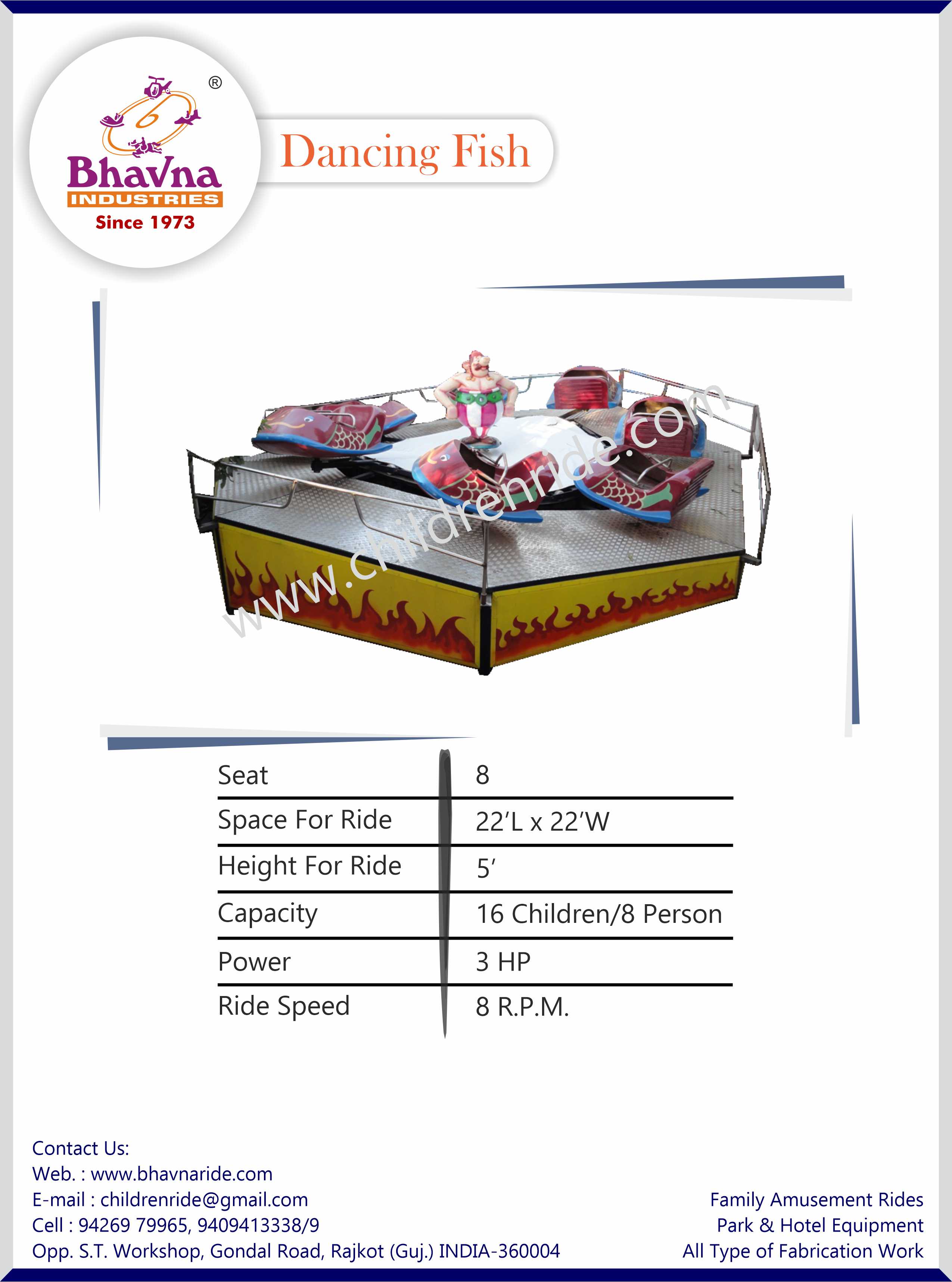 The Dancing Fish Ride is an exciting family rollercoaster that Bhavna Industries offers as a perfect attraction for amusement parks. The ride spins each car in a dance-like motion, adding extra excitement and thrills for young riders. With its colorful design and unique movement, the Dancing Fish Ride is a crowd-pleaser for families looking for a fun-filled day.