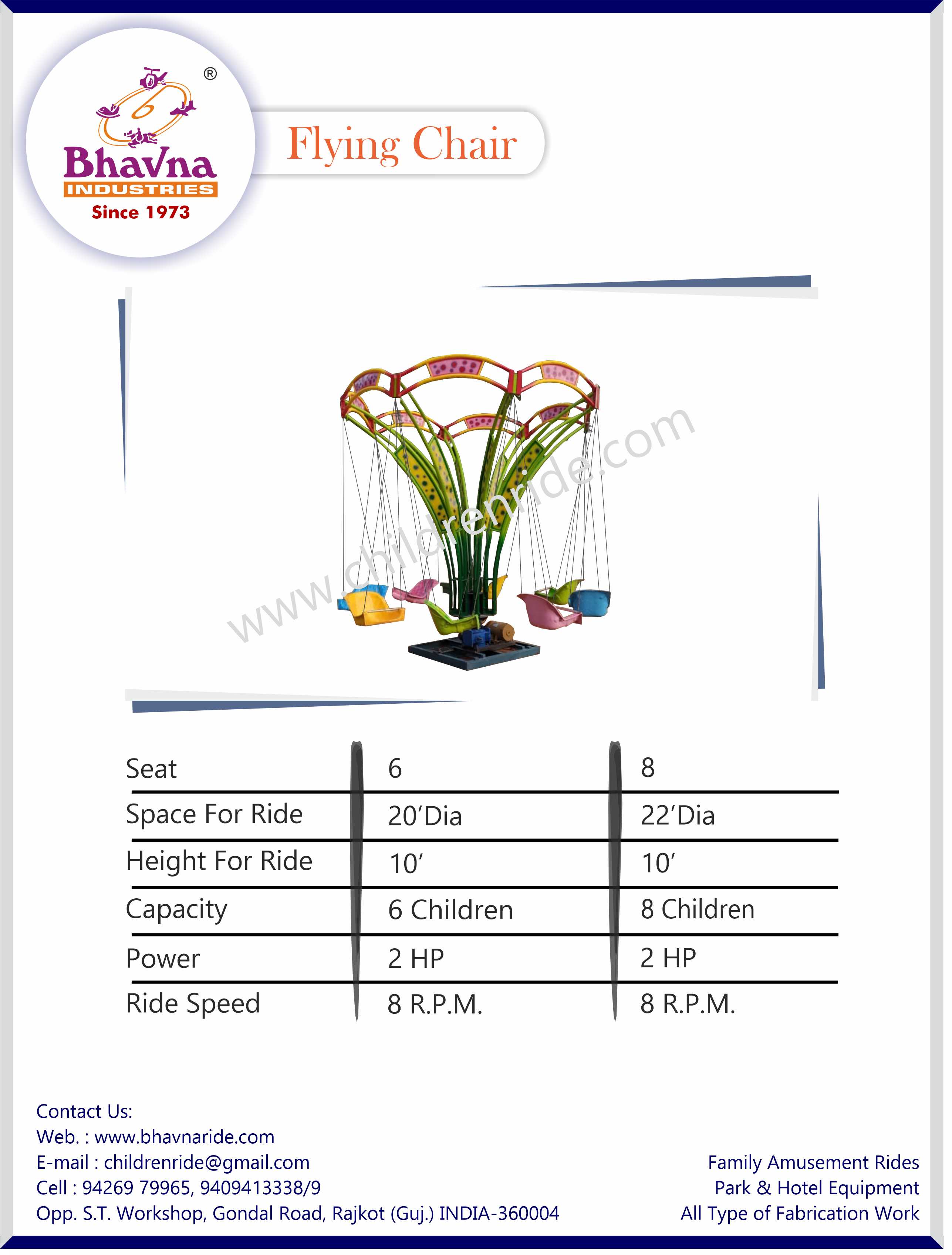 Our Flying Chair Ride combines rotation, lifting, and varying motion angles to create a unique experience. With beautiful and delicate design features, this amusement park ride attracts guests of all ages. Easy to operate and maintain, it's perfect for any park setting.