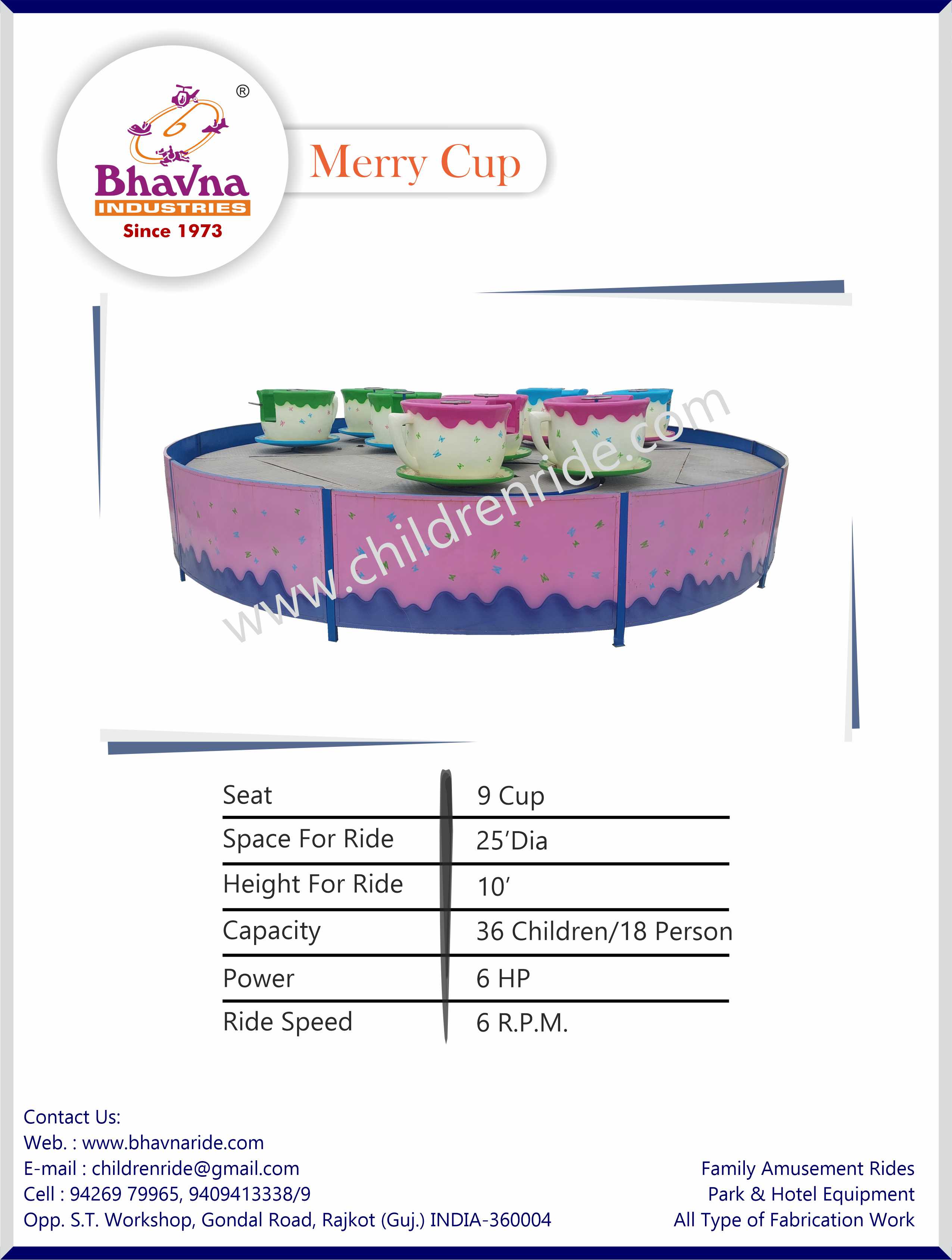 The Merry Cup Ride by Bhavna Industries is a popular family amusement ride that offers spinning teacups for riders to control. With a platform that moves in multiple directions, this ride provides a dizzying, fun-filled experience that families love. Its cheerful design and engaging motion make it an essential part of any family amusement park or funfair.