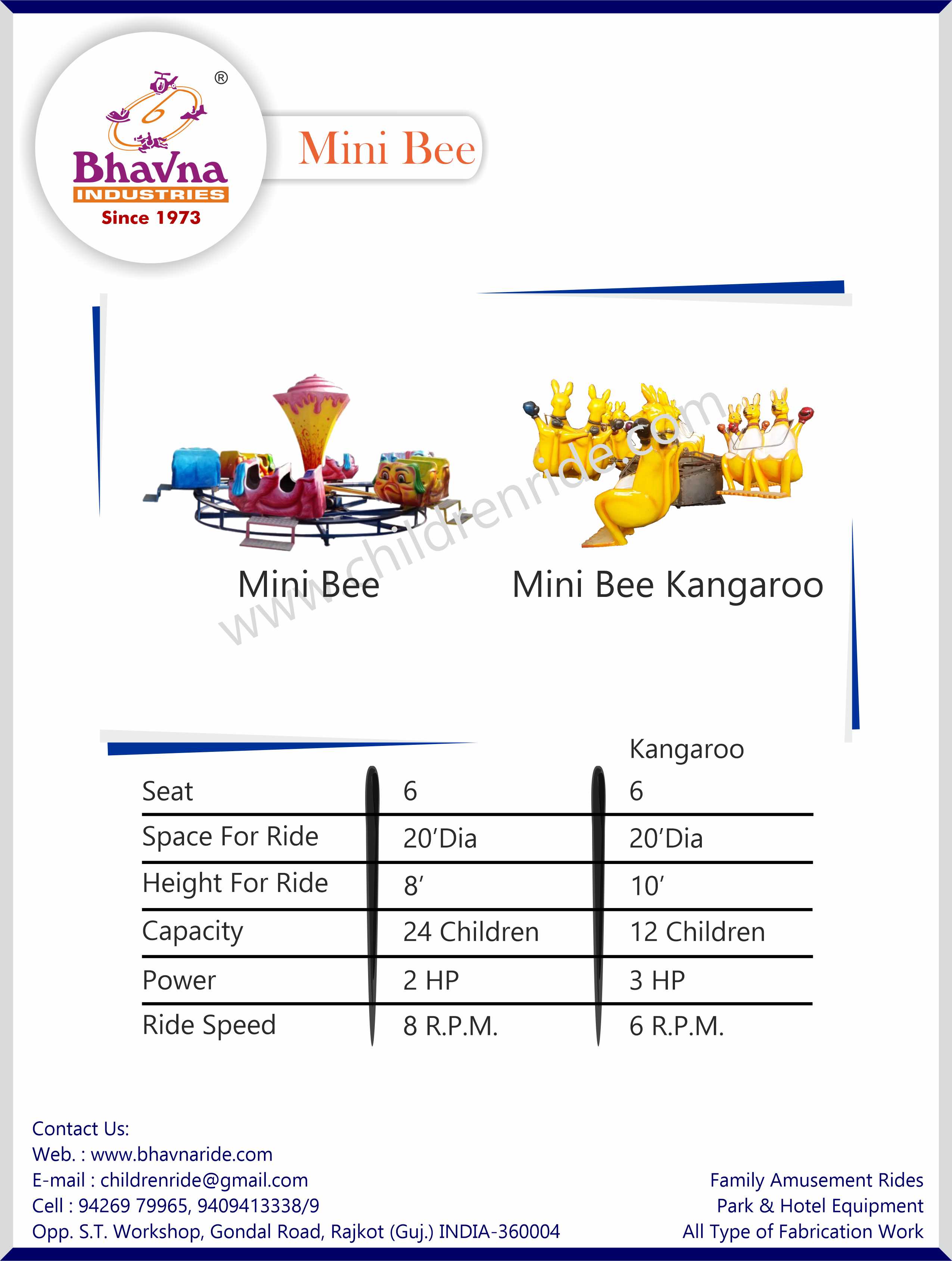 The Mini Bee Ride is a playful and wavy merry-go-round for kids where they sit in bee-shaped cabins, spinning and bouncing like bees in a garden. This ride's smooth finish and adorable design are sure to attract children and families at fairs and amusement parks.