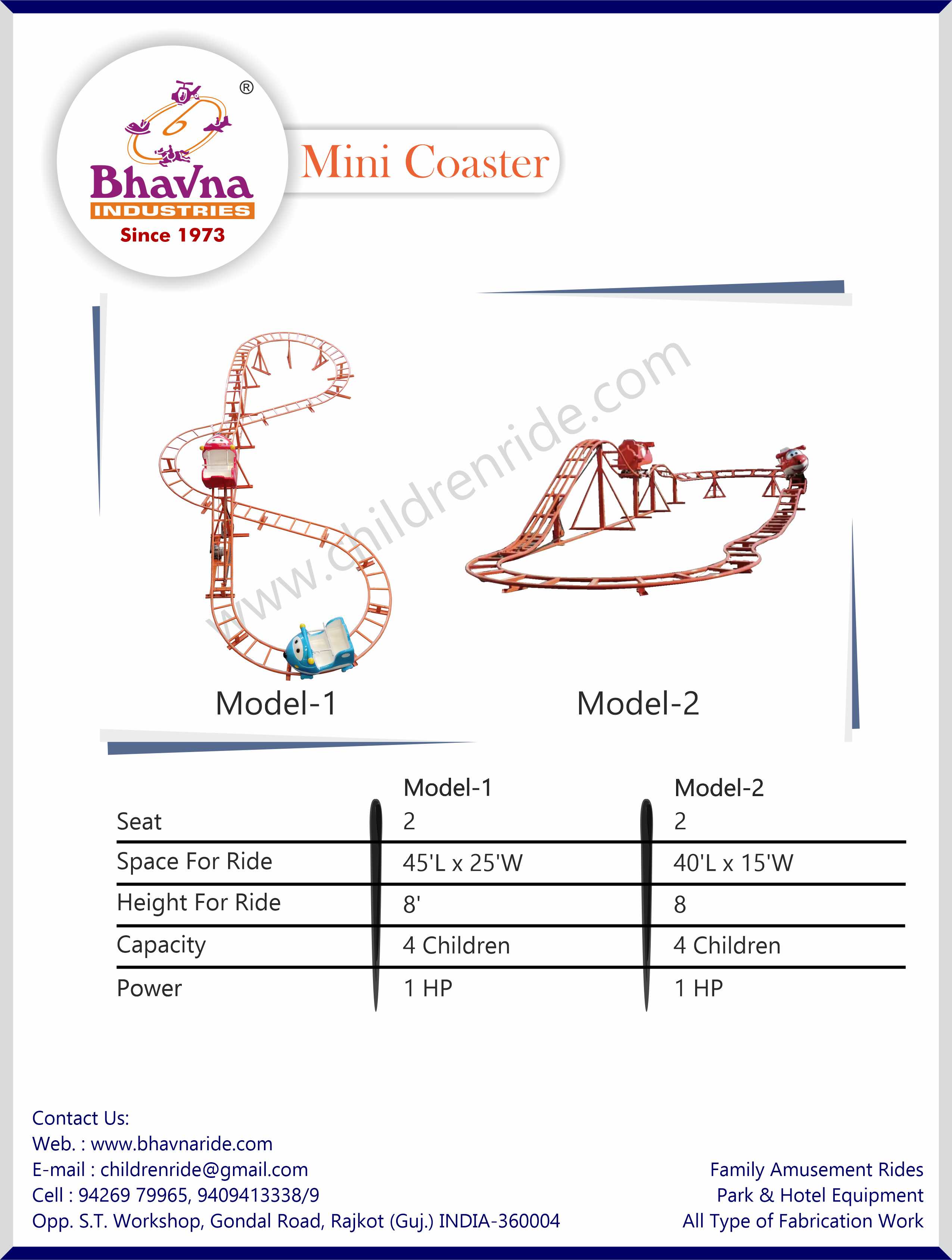 If you’re planning a theme park, Bhavna Industries offers top-quality Mini Coasters for space-limited areas. Our mini roller coasters are designed for malls and parks, available in various models with attractive finishes and vibrant colors to stand out among other rides.