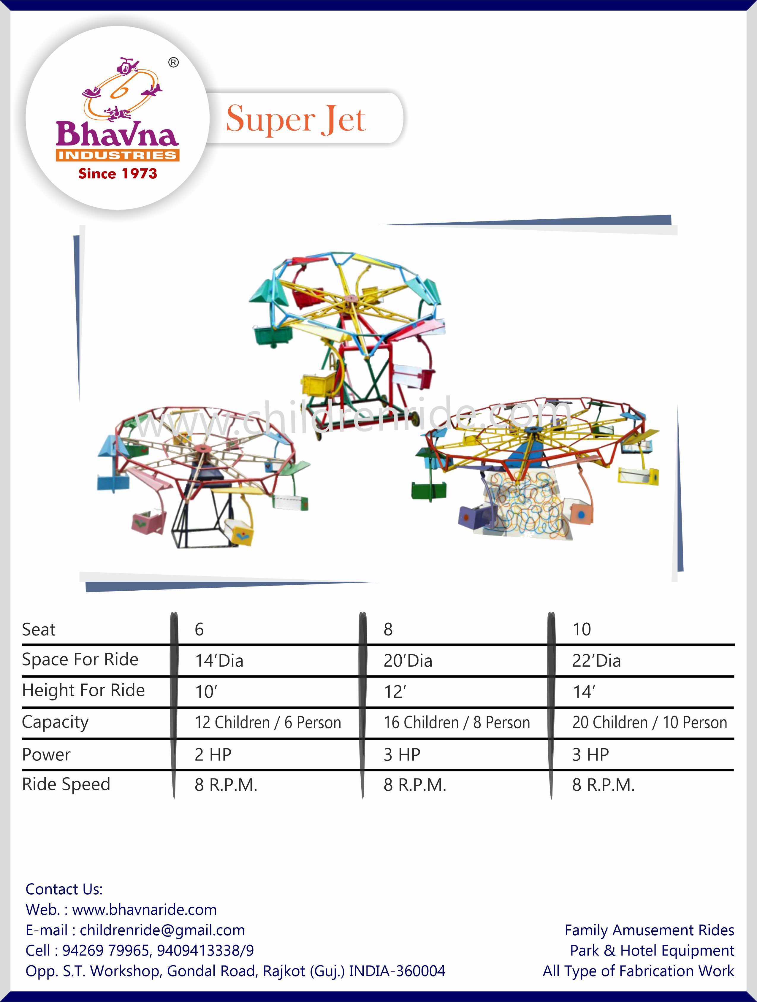 The Super Jet Ride is a thrilling, action-packed amusement ride that offers a combination of speed and rotation. With seats rotating at an angle, this paratrooper-style ride is suitable for all age groups. It’s available in various seating capacities, making it perfect for both small and large parks. This high-energy attraction is designed to deliver an exciting experience, keeping visitors coming back for more.