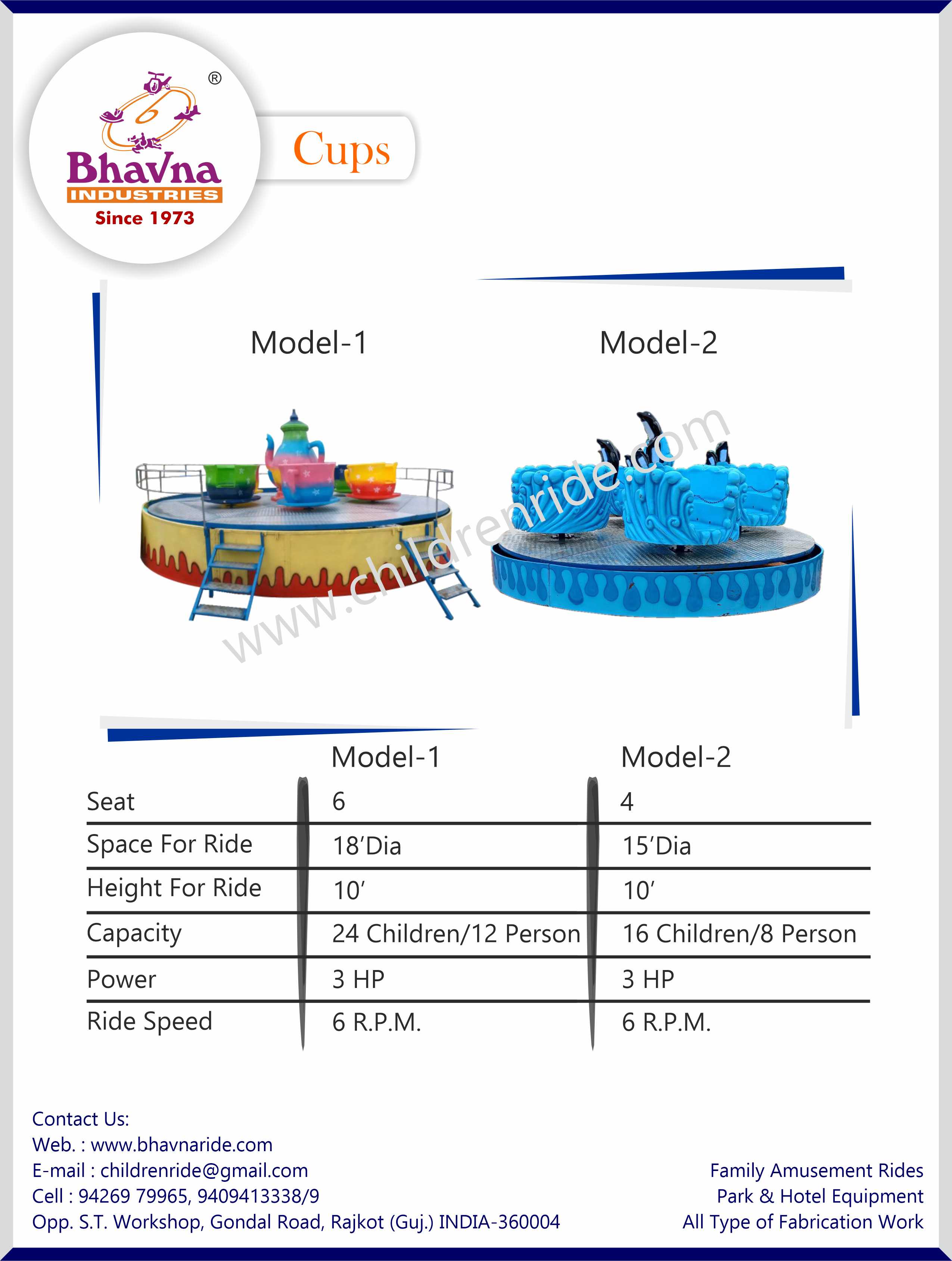 Bhavna Industries’ Cup Ride, also known as the Teacup Ride, is a whimsical and enduring amusement park favorite. Riders sit in teacup-shaped vehicles that spin around a circular platform, with individual cups spinning independently as well. The ride offers a fun, dizzying experience for children and families alike, and its vibrant design makes it an eye-catching addition to any theme park or fairground.