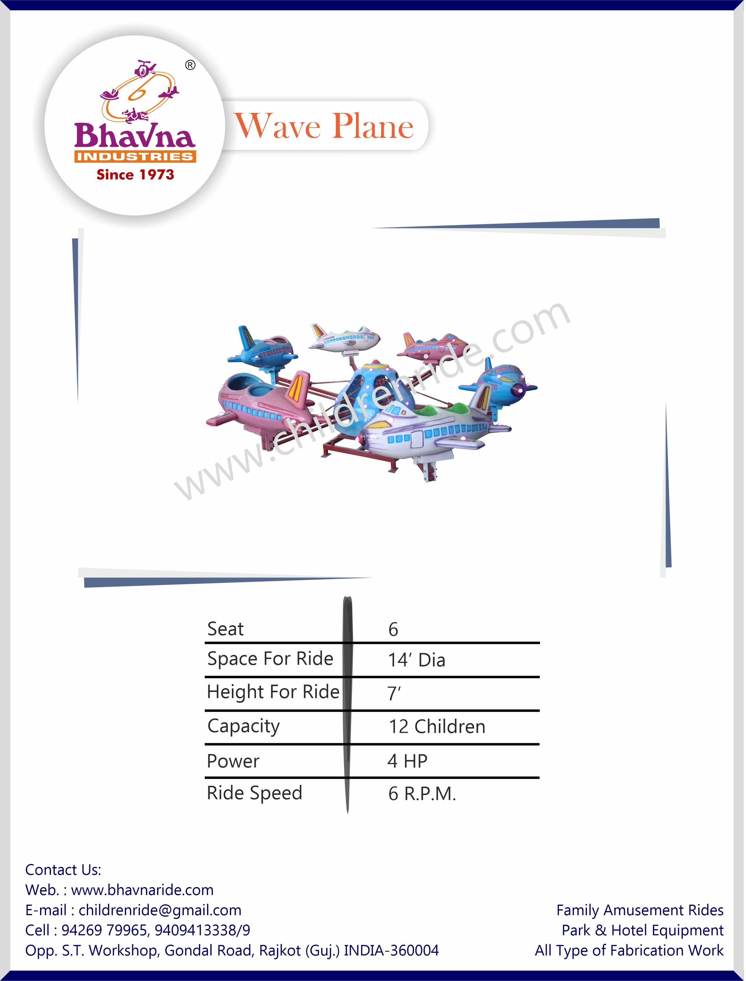 Combining visual appeal with advanced technology, Bhavna Industries' WavePlane Rides offer thrilling experiences for children up to 15 years old. Available in various sizes and capacities, the Wave Plane is designed to be both exciting and visually striking from all angles, making it a popular attraction at amusement parks and fairs. With its unique design and versatility, this ride captivates young audiences and provides endless fun.