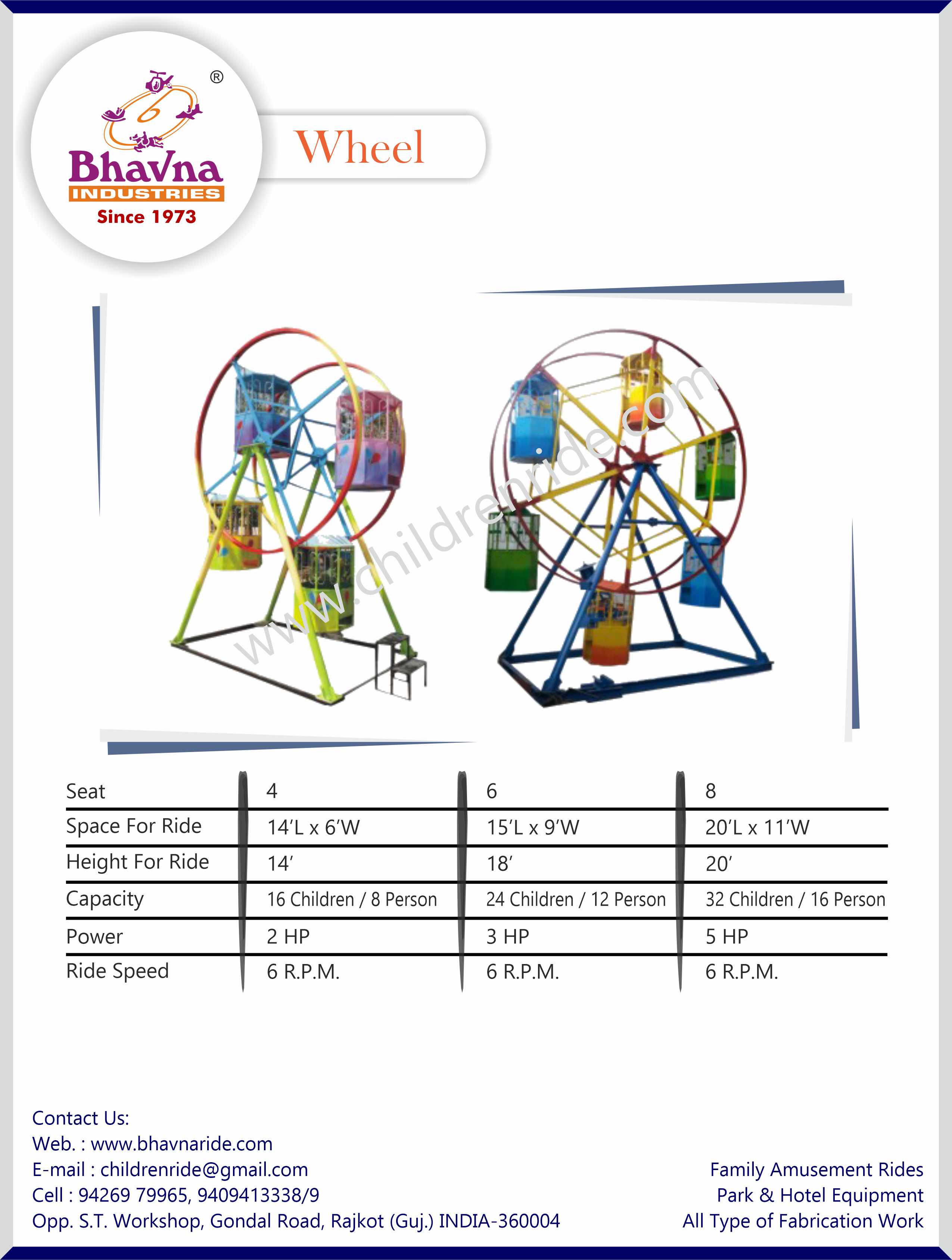 The Spinning Fair Ride or Mini Giant Wheel from Bhavna Industries is a perfect option for children’s amusement. Designed for safety, this small-scale version of a giantwheel offers a thrilling experience for younger riders aged 5 to 12. With a seating capacity ranging from 4 to 8 seats, this family-friendly amusement ride spins smoothly, giving young visitors a safe yet exhilarating ride experience. Its compact size makes it ideal for events, shopping malls, and small amusement parks. The ride replicates the feeling of a large Ferris wheel, making it an exciting attraction in any setting.